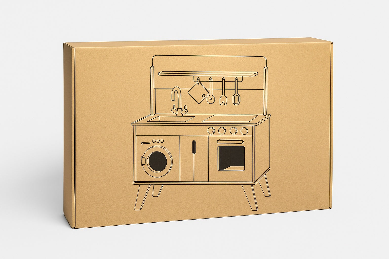 Sturdy eco box with kitchen illustration printed on the front